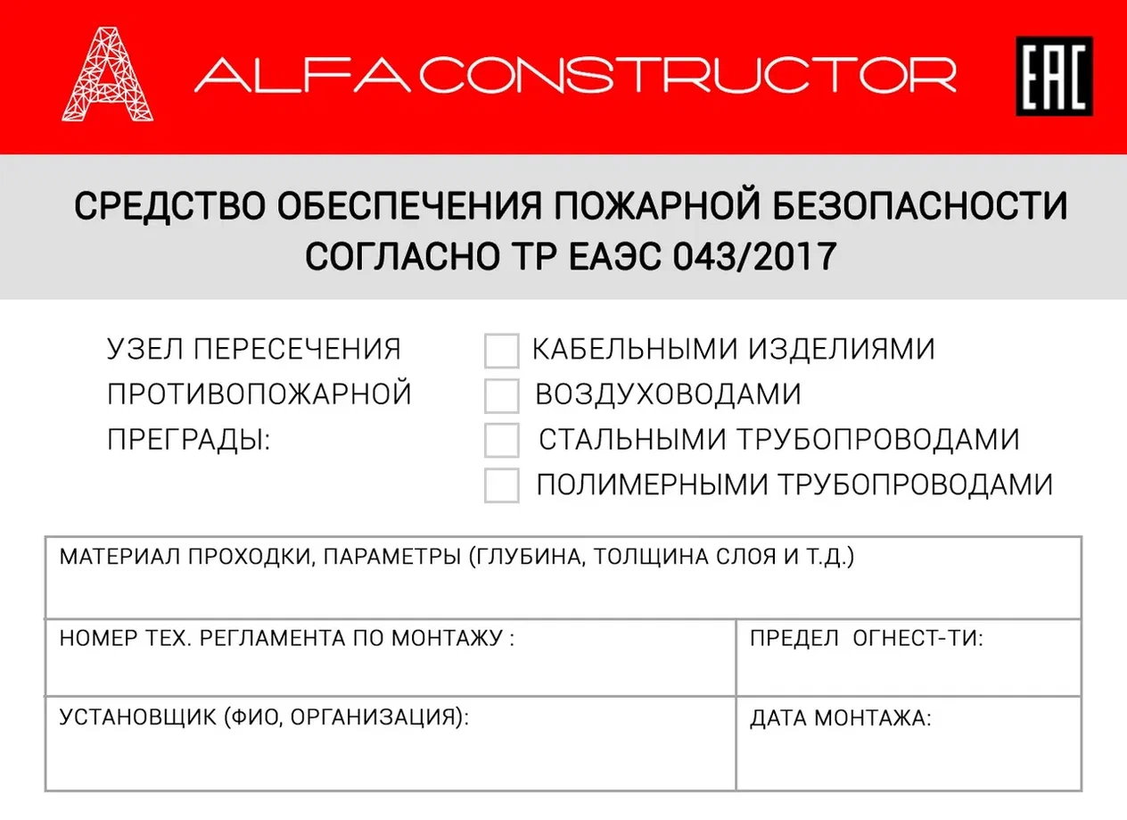 Заказать Идентификационная табличка (105x148мм) в ALFACONSTRUCTOR
