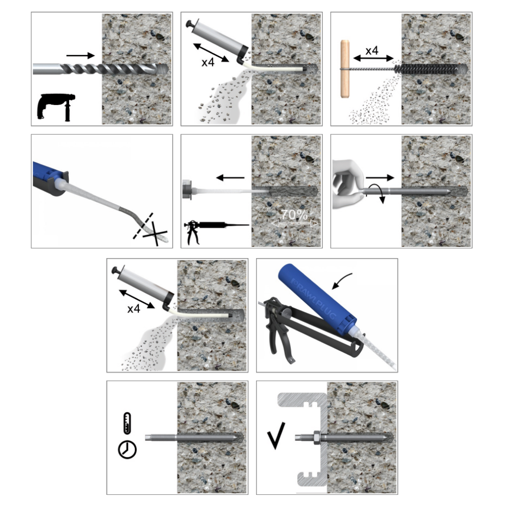 - Высокая прочность крепления в бетоне без трещин